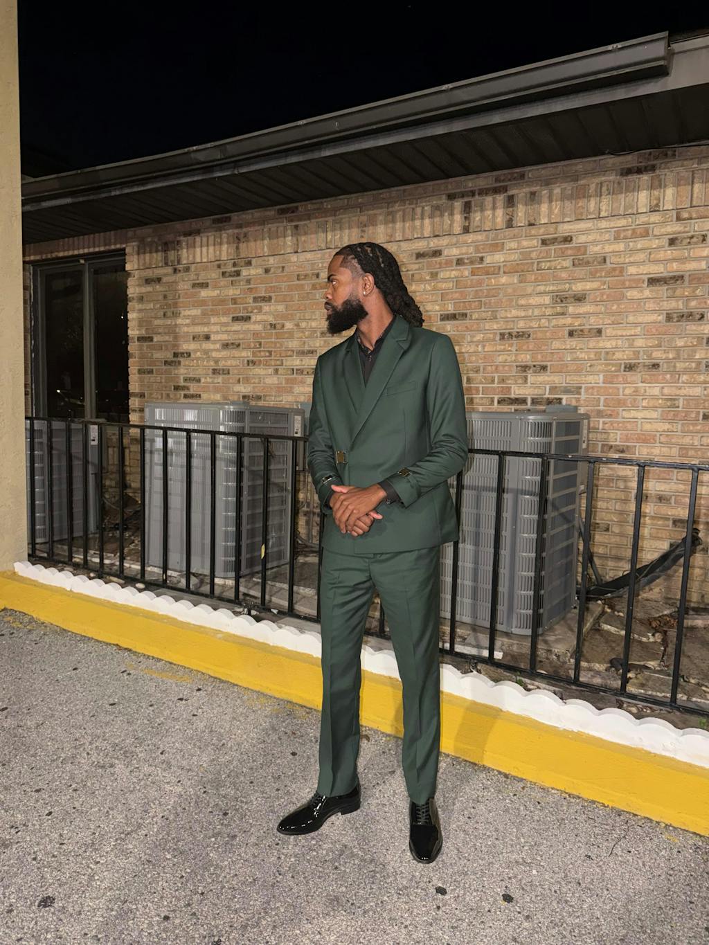 Suits for men feature a sleek 2-piece design with notched lapels and a regular fit, available in standout colors like hunt green, black, deep brown, and blue, as well as beige coffee, grey, champagne, burgundy, and navy suits.