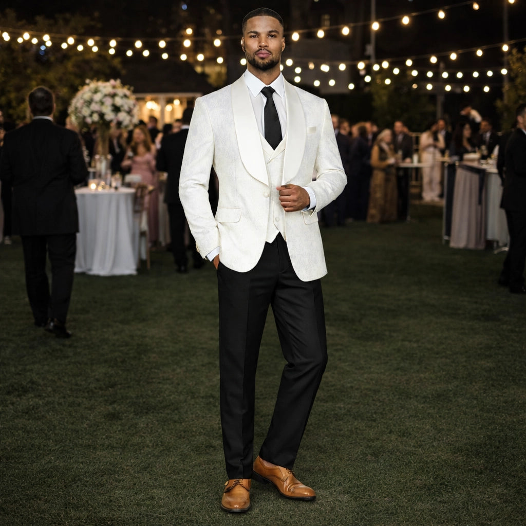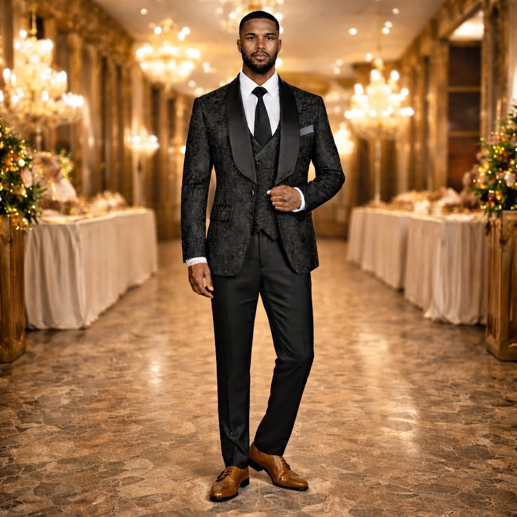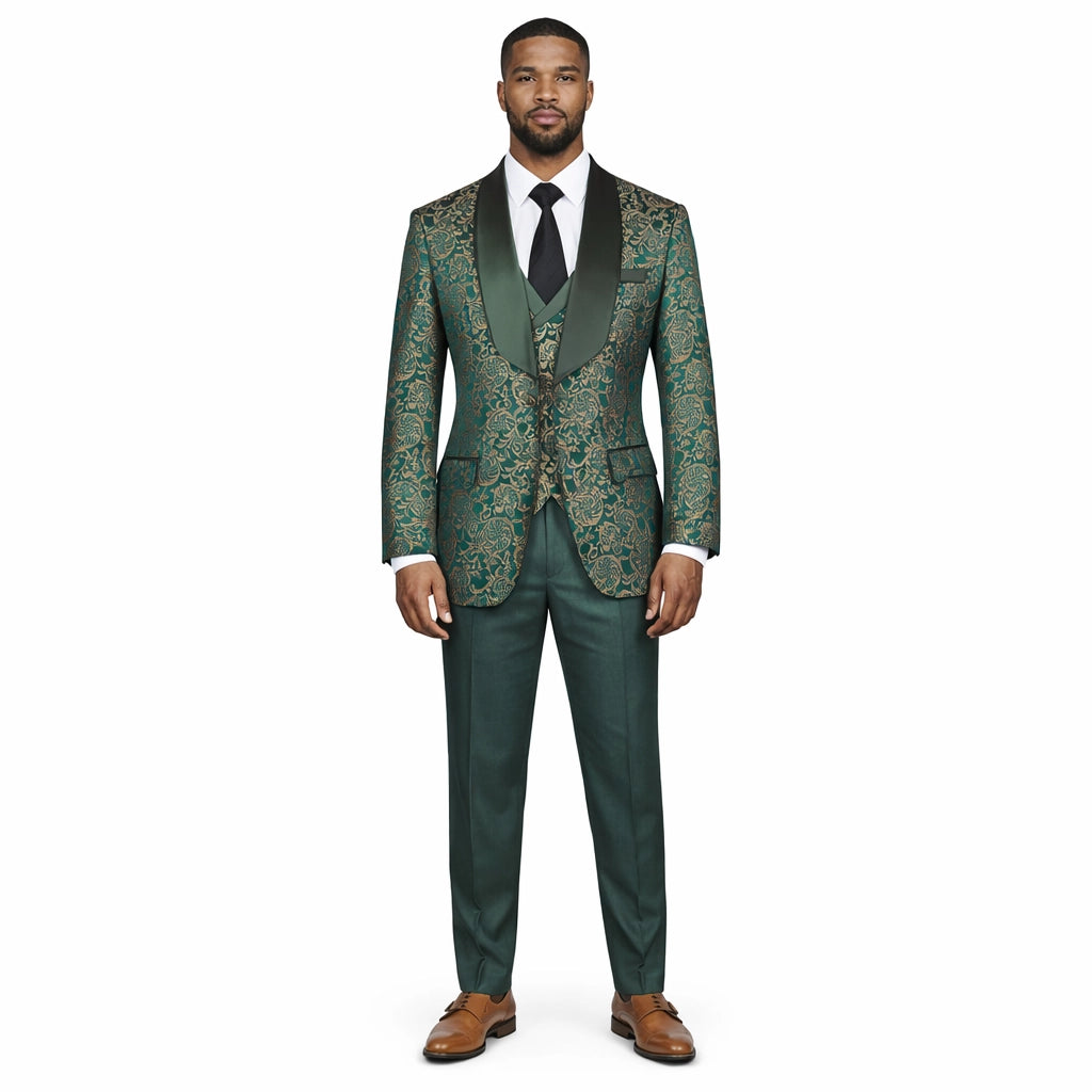 3-Piece Suit Men's Vintage Gold Damask Jacquard Suit for Prom Party Wedding