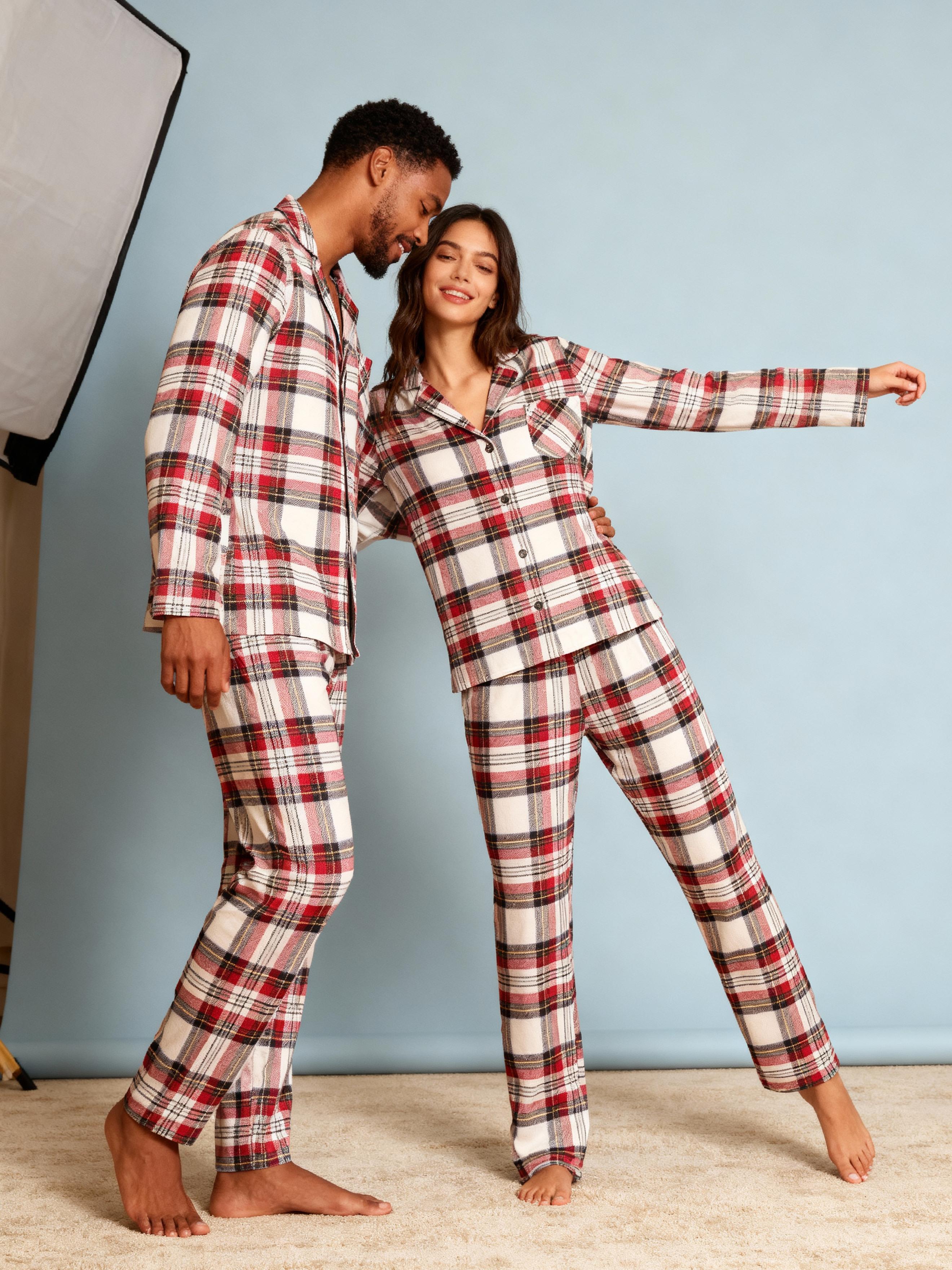 Dress the whole family in classic red plaid Christmas pajamas for festive mornings and holiday moments together. Made from a premium 70% cotton and 30% polyester blend, these pajamas offer soft, breathable comfort with lasting durability, perfect for Christmas Eve, holiday photos, or relaxing winter mornings.