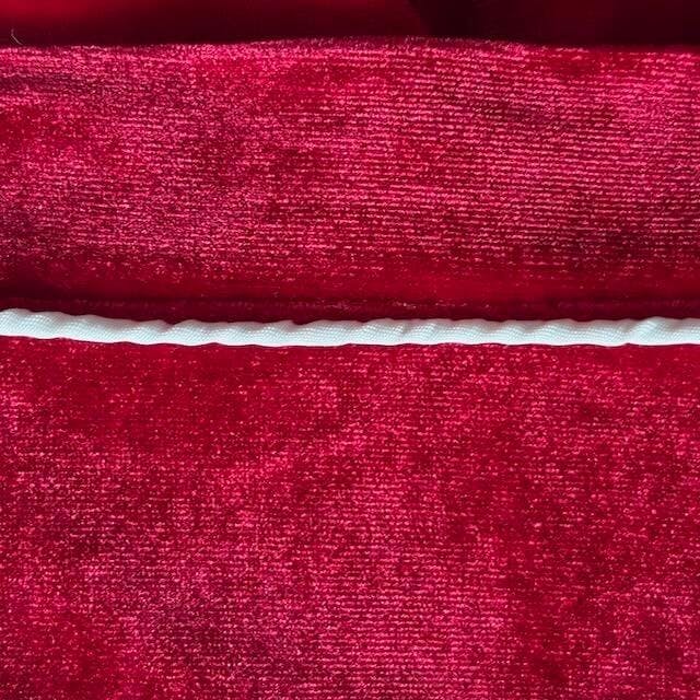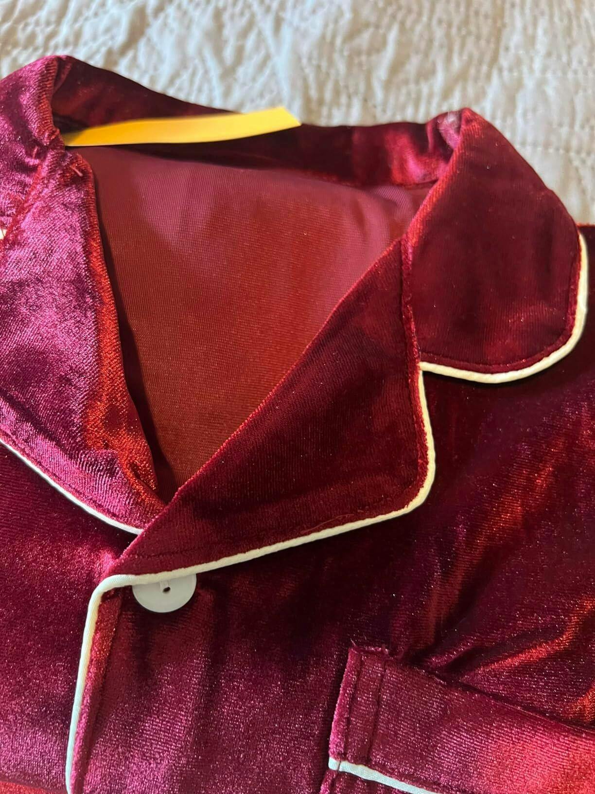 Celebrate the holidays together in style with this charming red velvet family pajama set.