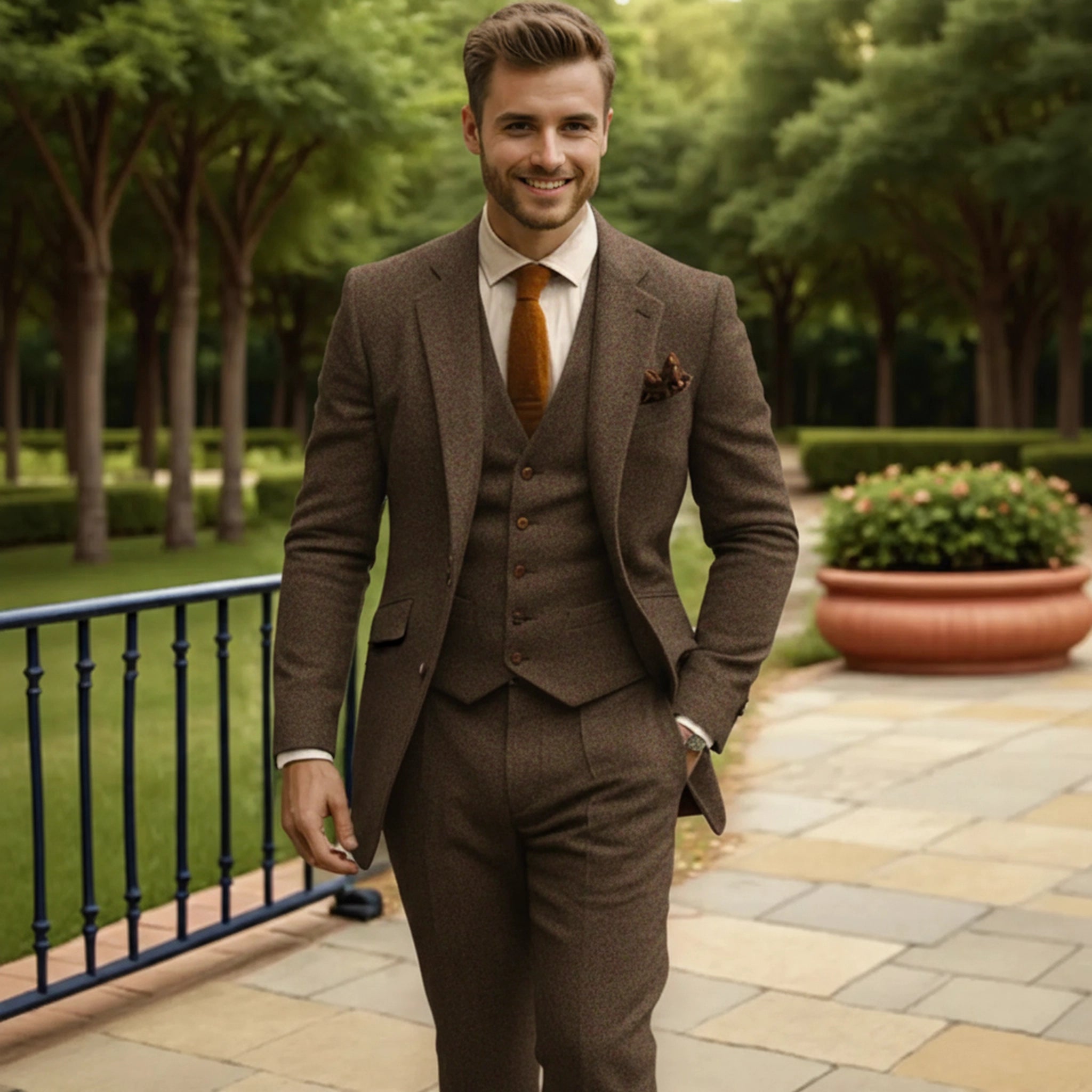 Sweetearing Tweed Suit Men's Breasted Vintage Classic Tuxedos